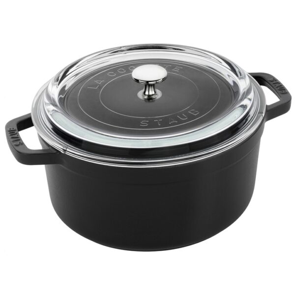 Garnek żeliwny okrągły ze szklaną pokrywką 3.8 ltr, czarny La Cocotte STAUB